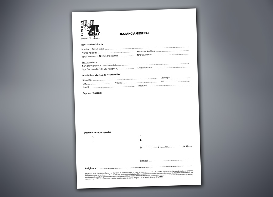 Instancia general impresión a 1+0 tintas sobre papel autocopiativo duplicado, primera hoja blanca y copia en color rosa, tamaño A-4, engomado a juegos por la parte superior